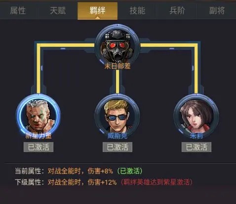 羁绊英雄达到固定星级后,还可解锁下级属性。