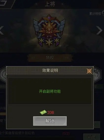 副将:副将功能需要在军衔达到上将后,激活副将特权开启。