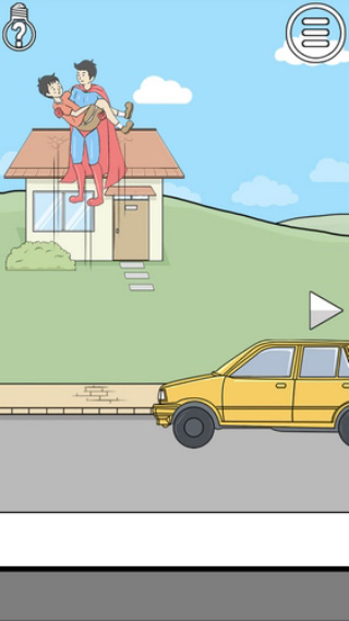 20、房顶上方5秒飞过一个超人,疯狂点击房顶抓一个超人,将超人道具给主角,超人就会带主角飞走顺利过关!