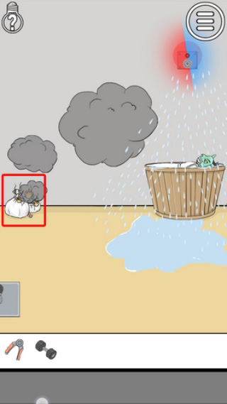 25、向左切换场景,拾取健身器材下方的砝码,向右切换场景,将砝码放在右下角的压力板上,然后拉下左侧拉环固定在钩子上,再拉下右侧拉环得到火柴,用火柴点燃右侧的包裹袋触发降水警报,将妖怪淋死,拨开轮胎取下电线,然后向左切换场景点击GO即可顺利过关!
