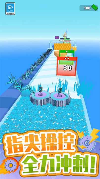 2、开局先熟悉齿轮刀片的旋转节奏,保持稳定前行并精准切割路上的物品。