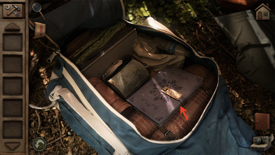 4、在书包这里可以看到一本笔记,但需要我们输入密码。