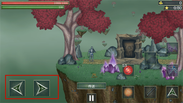 5、游戏的左边是控制方向的,右边是攻击、防御、跳跃。