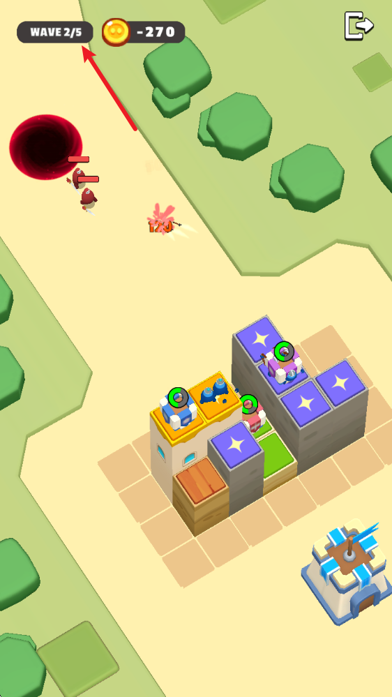 2、自由放置方块,打造你想要的城堡。更高的城墙、更宽的平台或更巧妙的布局都能改变战局。