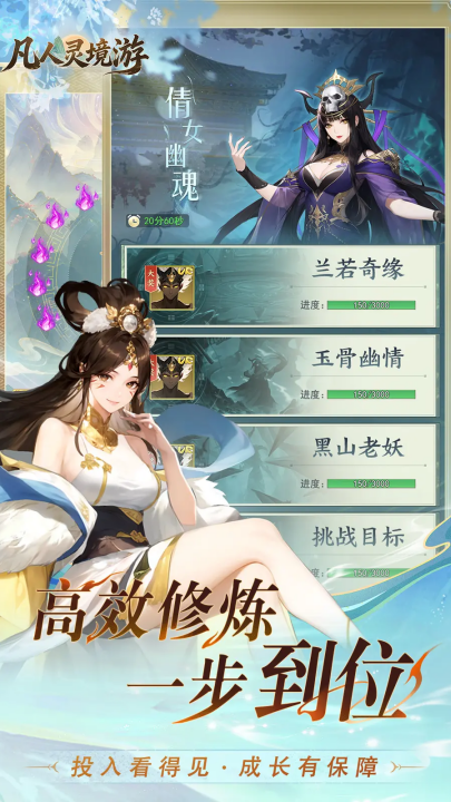 凡人灵境游游戏—— 持握一方会“呼吸”的仙域,开启你的多元时空收集之旅。这是一款以“赛季轮回”为核心的3D竖版仙侠ARPG。在这里,你收集万千时空的神将角色,体验手势畅爽战斗,在轻松放置中养成,于每一次纪元更迭时,开启一段全新的邂逅与传说。