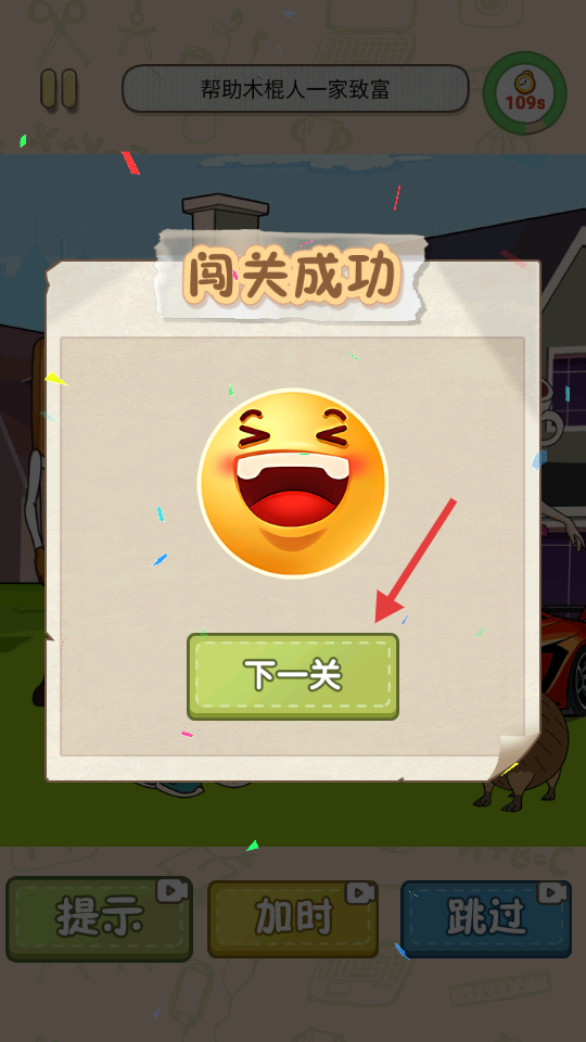 3、闯关成功后,点击“下一关”按钮,进入新的挑战关卡。