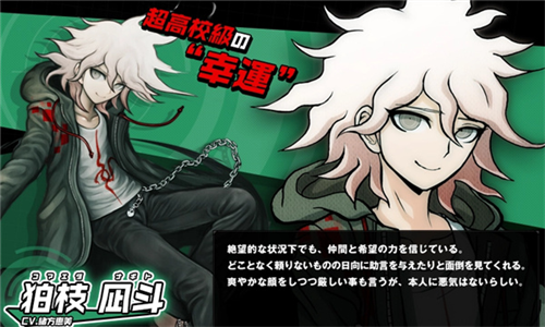 身穿连帽大衣的白发少年,即使处于绝望的情况下,仍坚信伙伴与希望所拥有的力量。虽然给人有点不可靠,但在学级裁判中经常给予日向建议,无论是推理能力还是逻辑思维能力都非常优秀。和七海一起被黑白熊称为“学级裁判的得分手”。