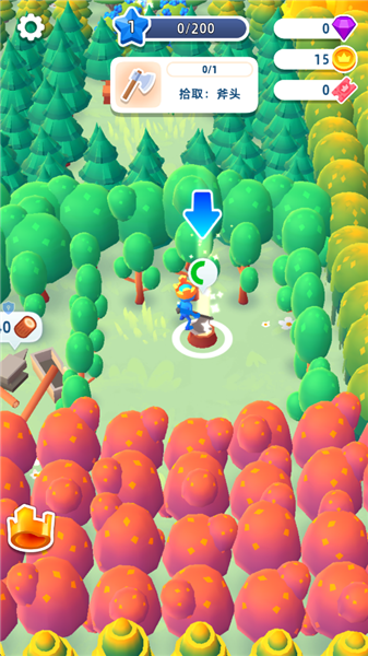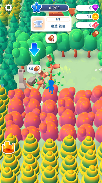 2、制作武器:玩家需逐步收集相关材料,比如木材、铁矿等等,便可利用它们来制作不同的武器,包括了弓箭、刀剑等。