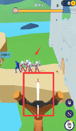 3、进入游戏点击长按往后拉可以发射弓箭出去。
