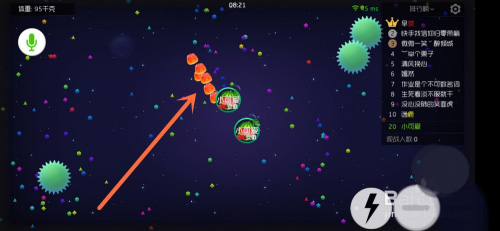 1、进入游戏后快速吃发育成大球状态,之后分成两小球