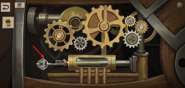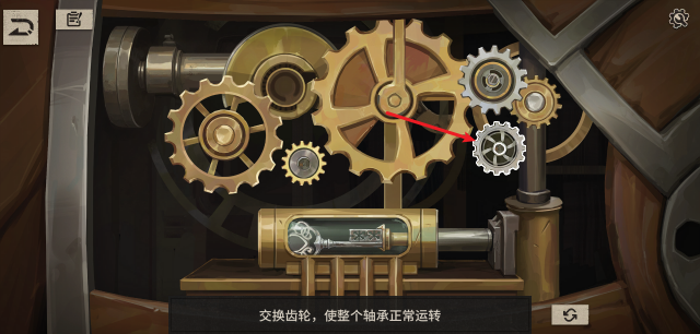 6、随后将三个小的齿轮交换位置到如图所示,随后齿轮就会转动,从而获得钥匙。