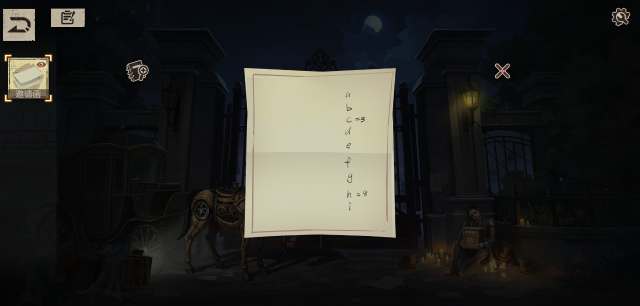 2、点击左侧的邀请函,点击后会反面,根据信息可以推测出,a-i分别代表了1-9。