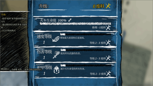7、接下来登上火车,在后座会看到升级列表,玩家需要收集材料,完成委托才能获得升级材料;