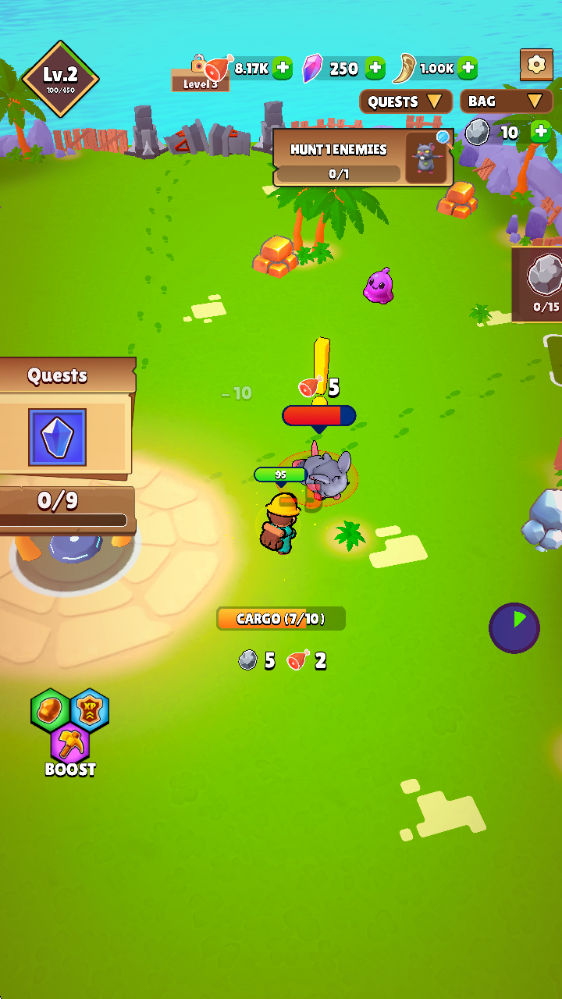 1、与敌对敌人战斗,升级你的镐子,解锁并装备各种各样的武器,并根据你的游戏风格定制角色。、