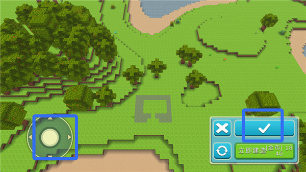 3、移动遥杆放置建筑位置,点击√完成建造。