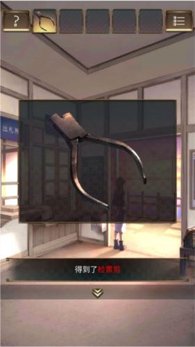 这里说一下每一章都一样的步骤,就是进入章节后和npc对话,后续这一步就不多说了,单数章节都是找到它的身份,双数章节都是签发车票。首先查看门外的小木牌,上面有五条长短不一的线条,记一下中短中中长,注意下面还有五个字小心会滑倒也记下来吧,后退一下在最左边的窗口拿到检票钳。