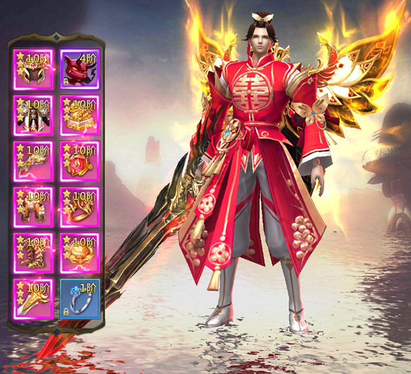 游戏里的装备由武器、铠甲、头盔、护手、护腿、靴子、仙坠、仙珠、仙戒和仙符组成