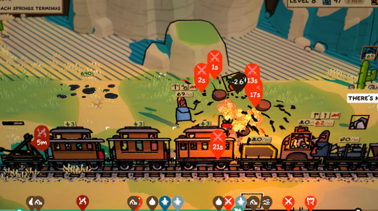 给火车加煤,建造新的车厢和新的设备,以抵御基本上所有的危险。随着游戏的进行,时间和距离的增加,游戏会越来越难,因此请尽量安排自动化运行。