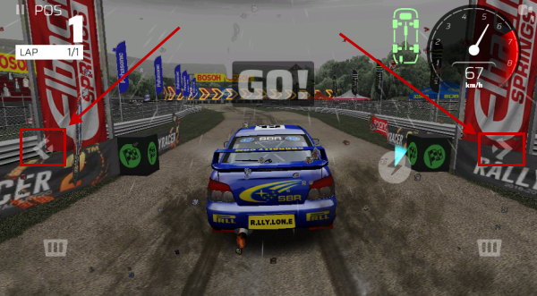 2、然后我们就可以看到屏幕的左侧两侧箭头按键可以控制我们赛车的方向。