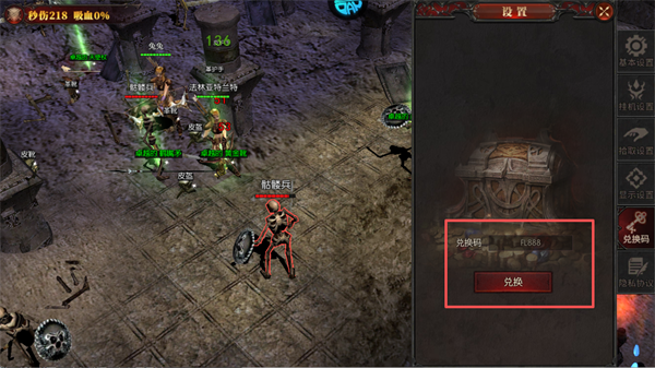 2、在右侧就会看到兑换码选项了