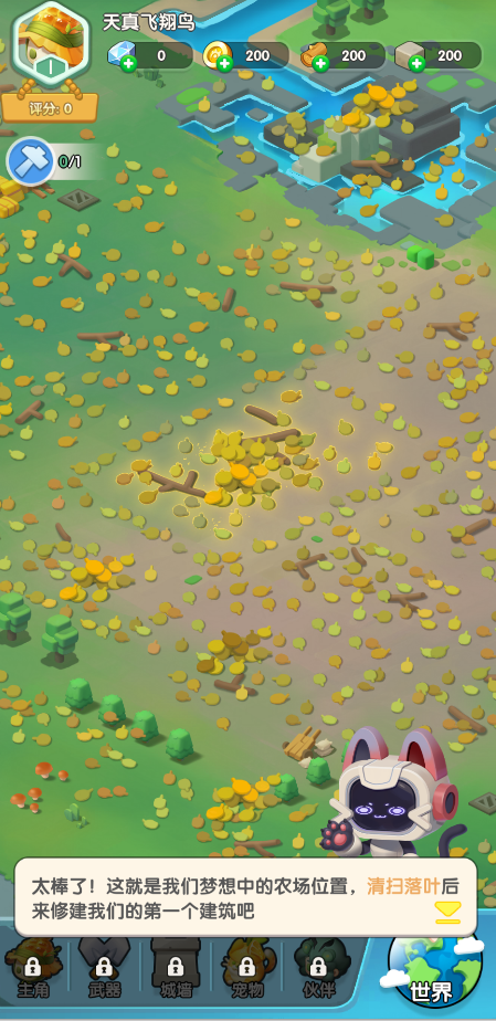 1、可点击落叶清扫指定区域,清理掉区域内的落叶,为后续农场建设等操作做准备。