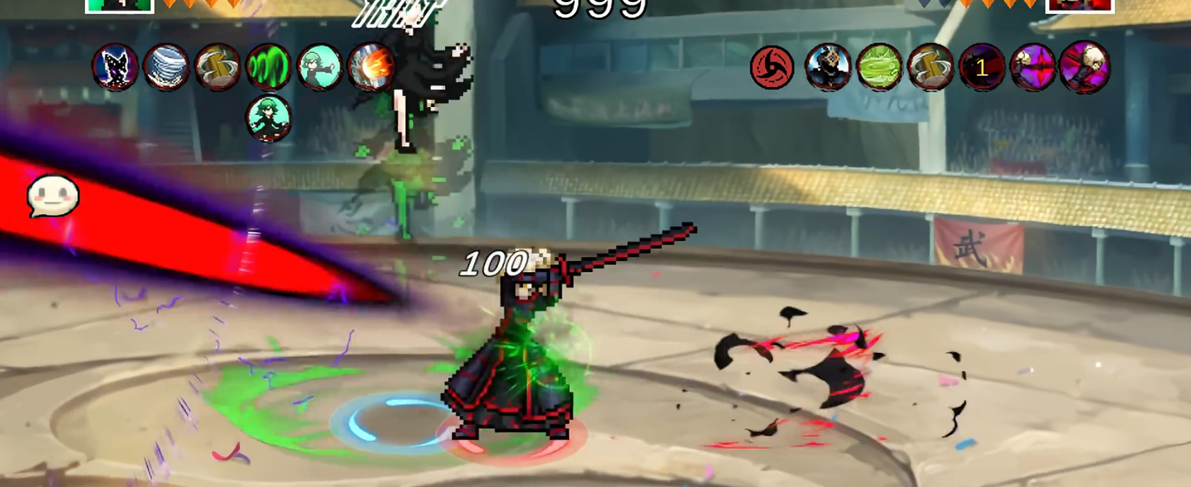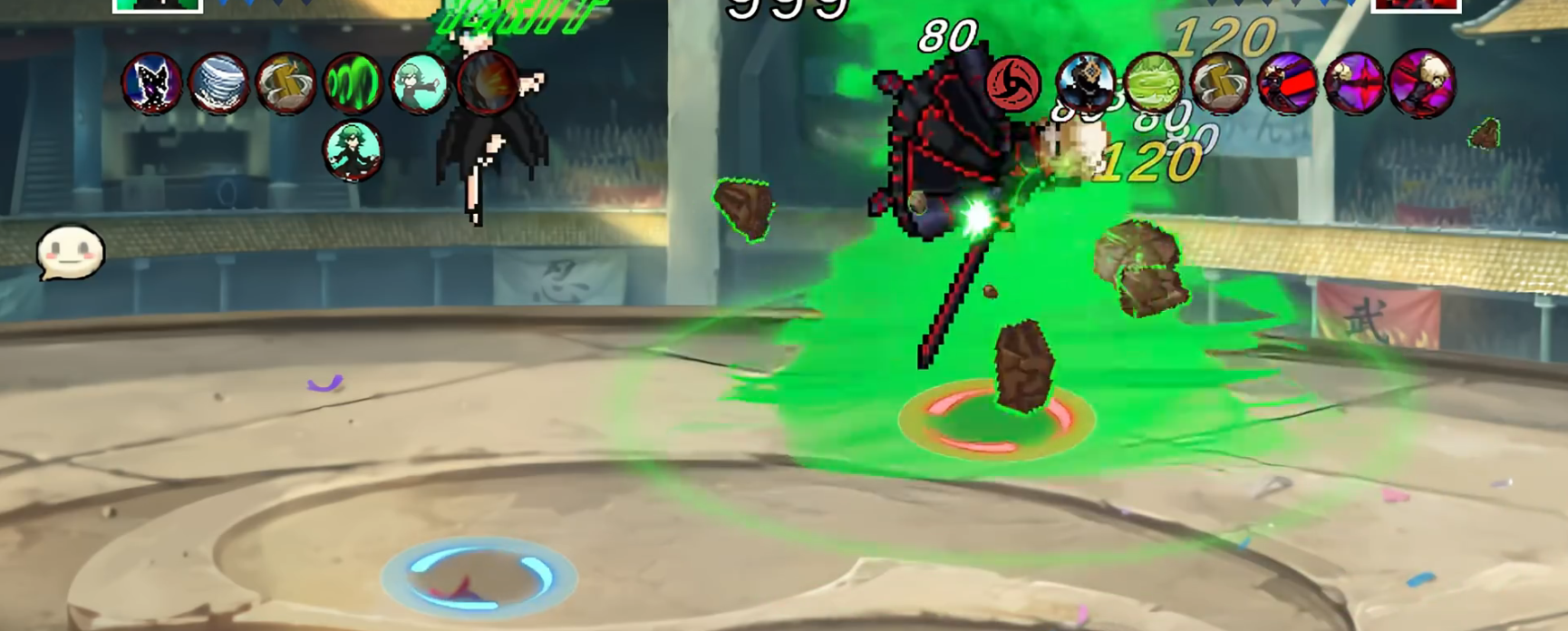 1、复古像素画风:游戏采用经典像素风格,重现火影忍者中的经典场景和角色,带来怀旧感与视觉冲击。