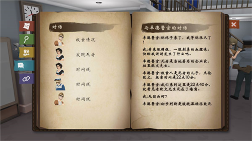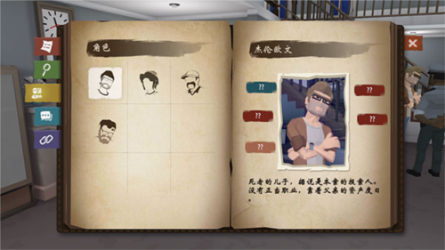 3、系统化探案流程:证据、角色、对话多页面分类管理,完整还原专业侦探的办案逻辑