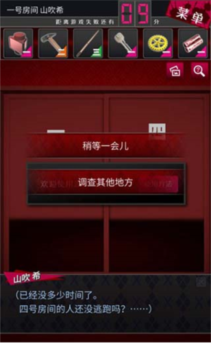 6、然后把每个房间的道具还回去,并且选择“稍等一会儿”,所有人都逃脱后用钥匙离开。