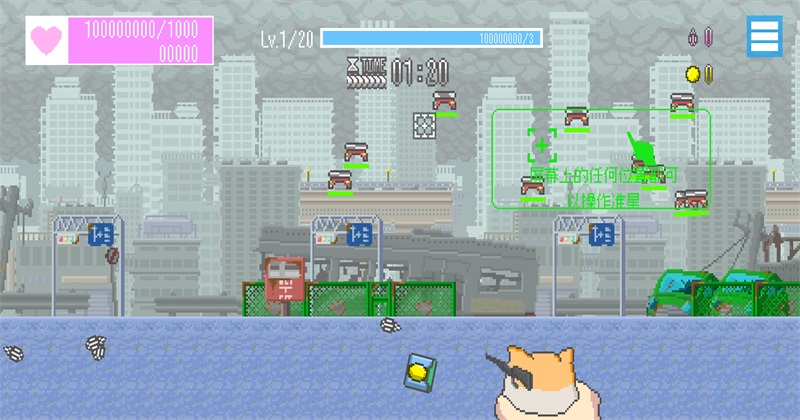 饲养可爱的歼灭兵器的国土防卫游戏打倒入侵敌人的手持歼灭兵器右手握紧饼饼,将准星对准敌军并攻击。