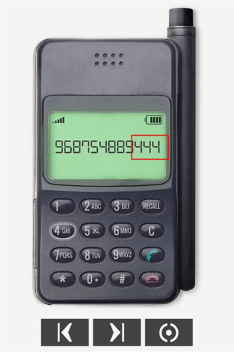 翻到手机处,输入密码8961解锁手机(左右箭头按钮控制按键左右位置切换,第三个按钮为确定按钮。RECALL重拨,C删除,绿色拨打,红色挂断)。