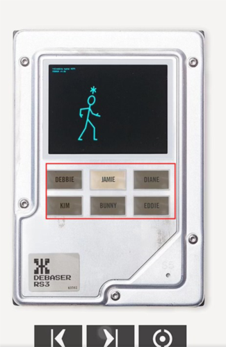 翻到最下面密码装置处,按漫画从左到右说话顺序点击DEBBIE,JAMIE,DEBBIE,JAMIE,JAMIE,DIANE,DEBBIE,解锁装置,之后就过关啦!