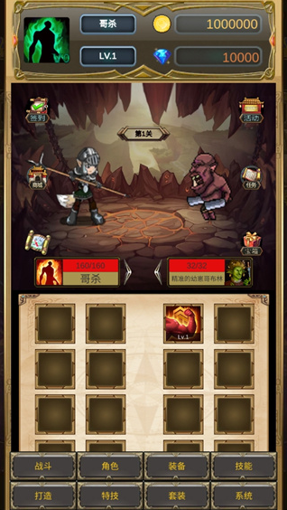 3、打败哥布林可以获得经验和装备等,升级装备可以提升战斗力。