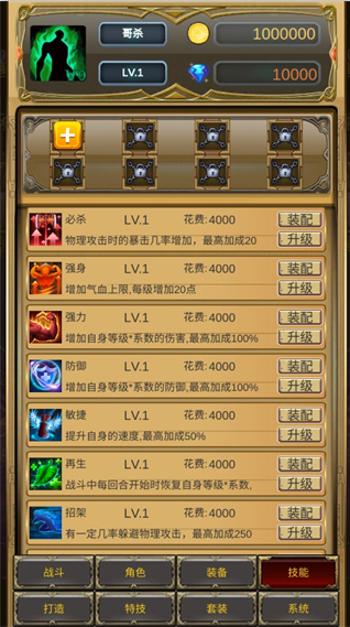 6.【宝箱】产出【套装碎片】和【特技碎片】。前期可以开一些特技宝箱。升一级就可以让装备有一个强大的特技。
