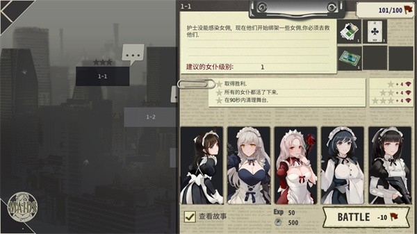 3、根据敌情和目标任务,自由搭配女仆角色阵容;