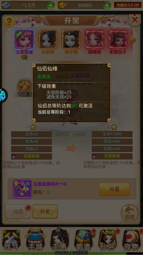 3、仙侣升星需要消耗同类型的仙侣碎片,升星可增加技能威力