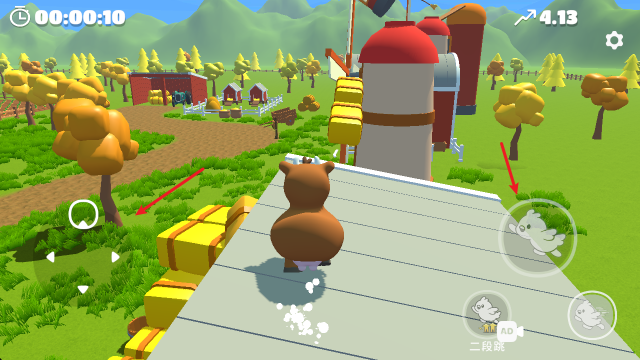 1、游戏中左侧摇杆控制角色移动,右侧点击即可跳跃。