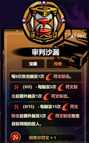 1、斩击流的核心为沙漏,不建议拿到护腕或猎人印记来走斩击流。目前只有四个稳定传奇来源,对于五件红流斩击来说拿不全,即沙漏,被侵蚀的护腕,猎人印记,无形之刃和诡异的眼镜。而护腕和印记两者绑定程度较高,单拿一个效果不好,沙漏后更推荐优先拿通用的无形之刃和眼镜,可以转蓝流增伤等更加灵活,也可以避免纯斩击流找不到关键传奇道具的尴尬。