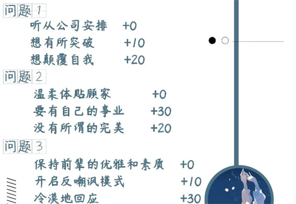 1、依据下面选项,增加对应的女王值。