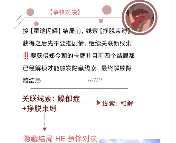5、针锋相对说明:郑今朝的故事流程很复杂,活动的两个故事隐藏结局都需要获得对应的卡牌。