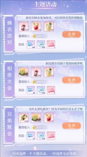 【主题活动】对食量的要求高于外卖订单,一次只能选择一个主题活动,但完成主题活动可以获得丰厚的奖励。