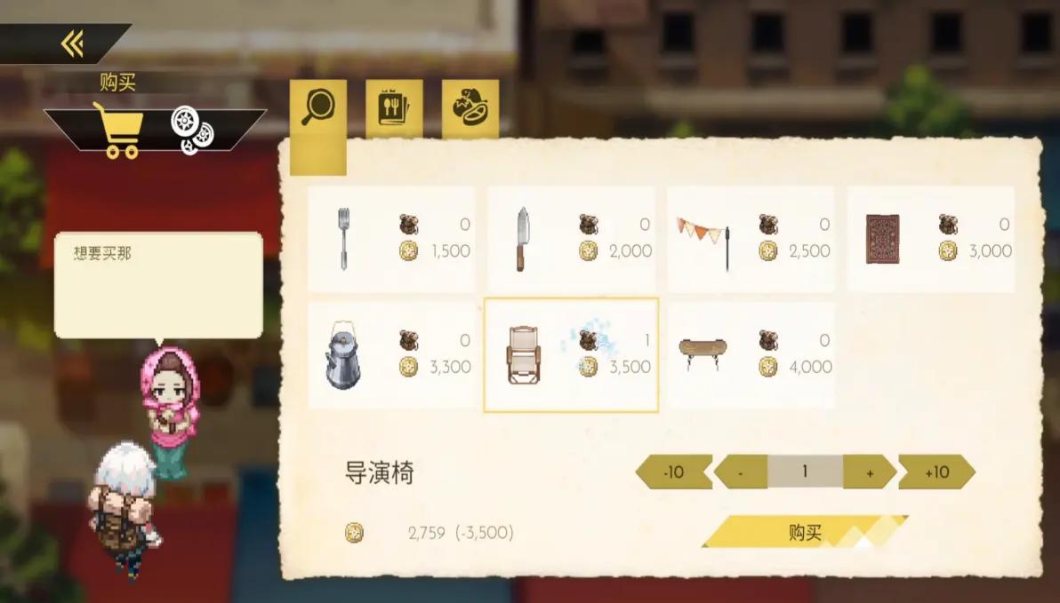 2、玩家可以在这里购买厨具(用于营地烹饪相应的料理,没有厨具,只有食材是无法烹饪指定食物的)、食材以及布置营地用的各种装饰类道具;也可以接取委托挑战(相当于支线,只不过没有故事,只有挑战跟奖励),挑战主要分为击败指定种类的敌人多少只、在无止境复活的敌人攻势下生存多少秒,以及击败某个精英怪物等。