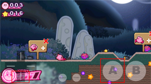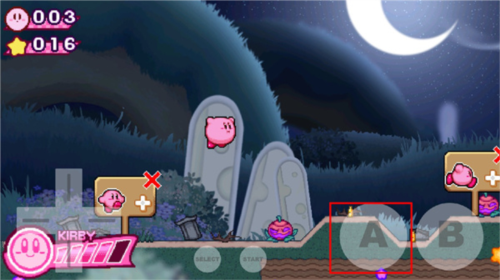 当我们点击“A健”进行跳跃时,再次点击可以使卡比飞起来,持续点击可以保持飞行的高度,能够帮助我们越过多重障碍和危险。