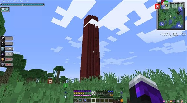 这种高塔顶上一半都有2个钻石块,而我们的技巧就是在塔外面用漏斗偷或者用打包带。这样就可以不用打怪和傀儡就能拿到所有的物资了。累计一定物资后,做出来万恶之源锻造台,后面升级装备和武器工具都要它。
