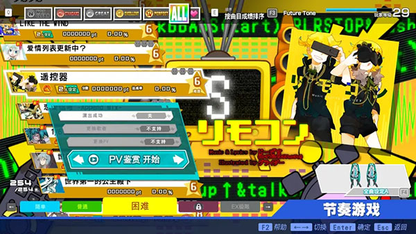1、节奏游戏:可以游玩游戏或观看歌曲PV。