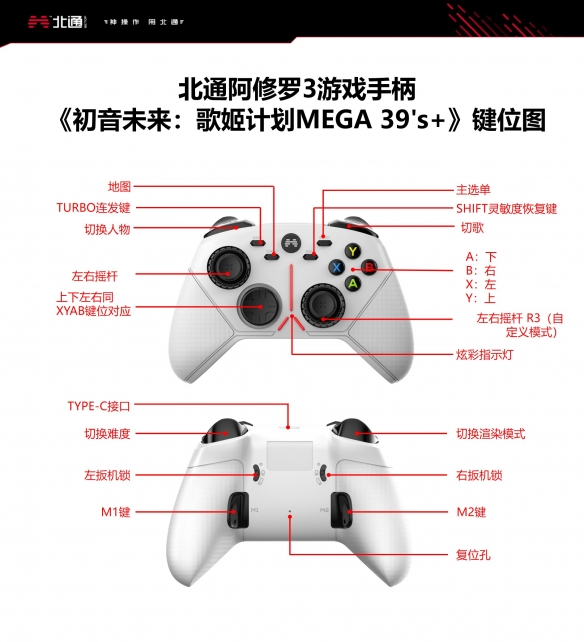游戏支持键鼠和手柄操作,大家可以根据自己的习惯选择操作许多小伙伴不知道初音未来手柄的具体操作如何,下面小编就带来北通阿修罗3手柄按键介绍,一起来看看吧。