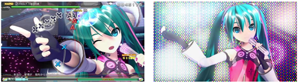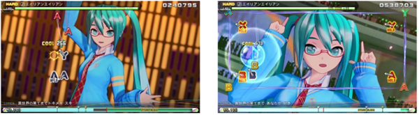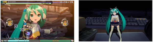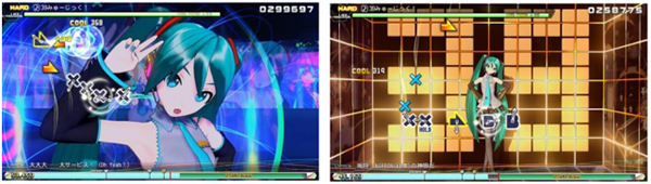 可在3D立体化的初音未来角色们登场的PV或原创PV的影像中,畅享音乐节奏的游戏乐趣。