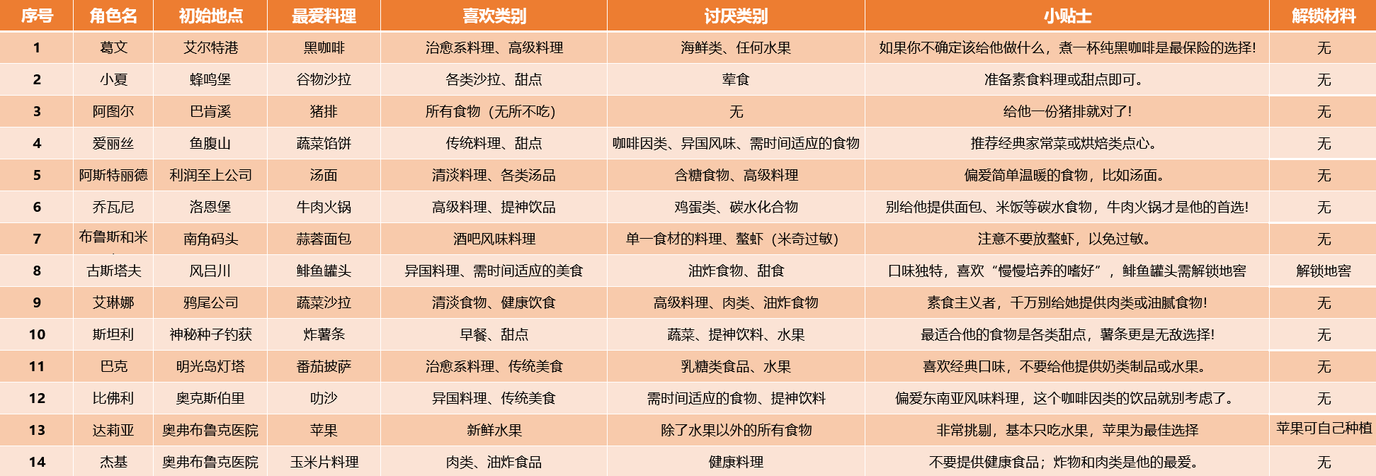 不同乘客有自己的饮食喜好,可接受的食物、喜欢的食物、讨厌的食物和最爱的食物,喜欢的食物吃了心情会更好,讨厌的食物则坚决不吃(阿图尔叔叔不挑食,他真的,我哭死)