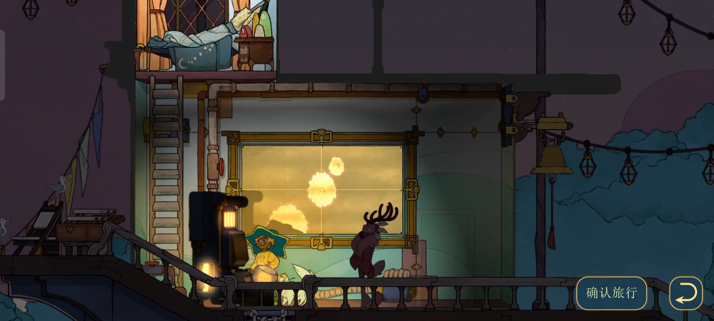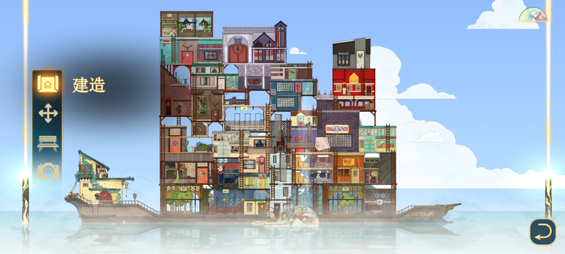 游戏的推进主要围绕着乘客们各式各样的心愿,为了完成心愿,需要探索更多区域,为了探索更多区域,需要升级船,为了升级船,需要完成委托,寻找灵魂,收集资源,不断在船上建造各式各样不同功能的建筑
