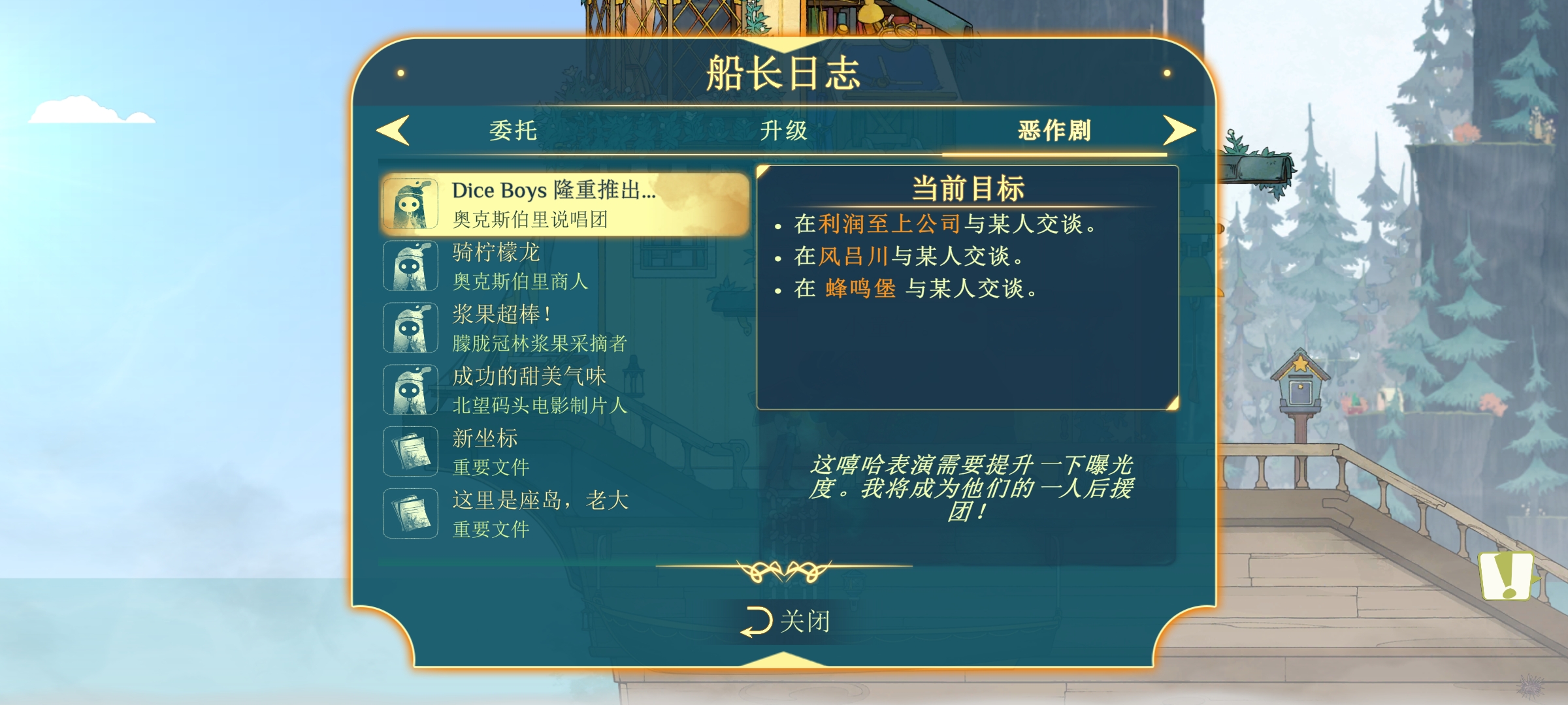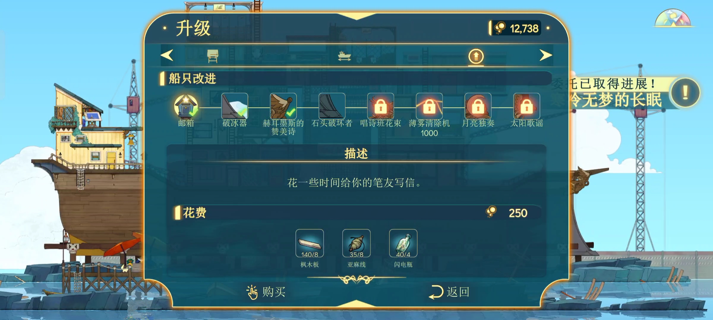 6、每次去升级船和艾伯特聊天就可以