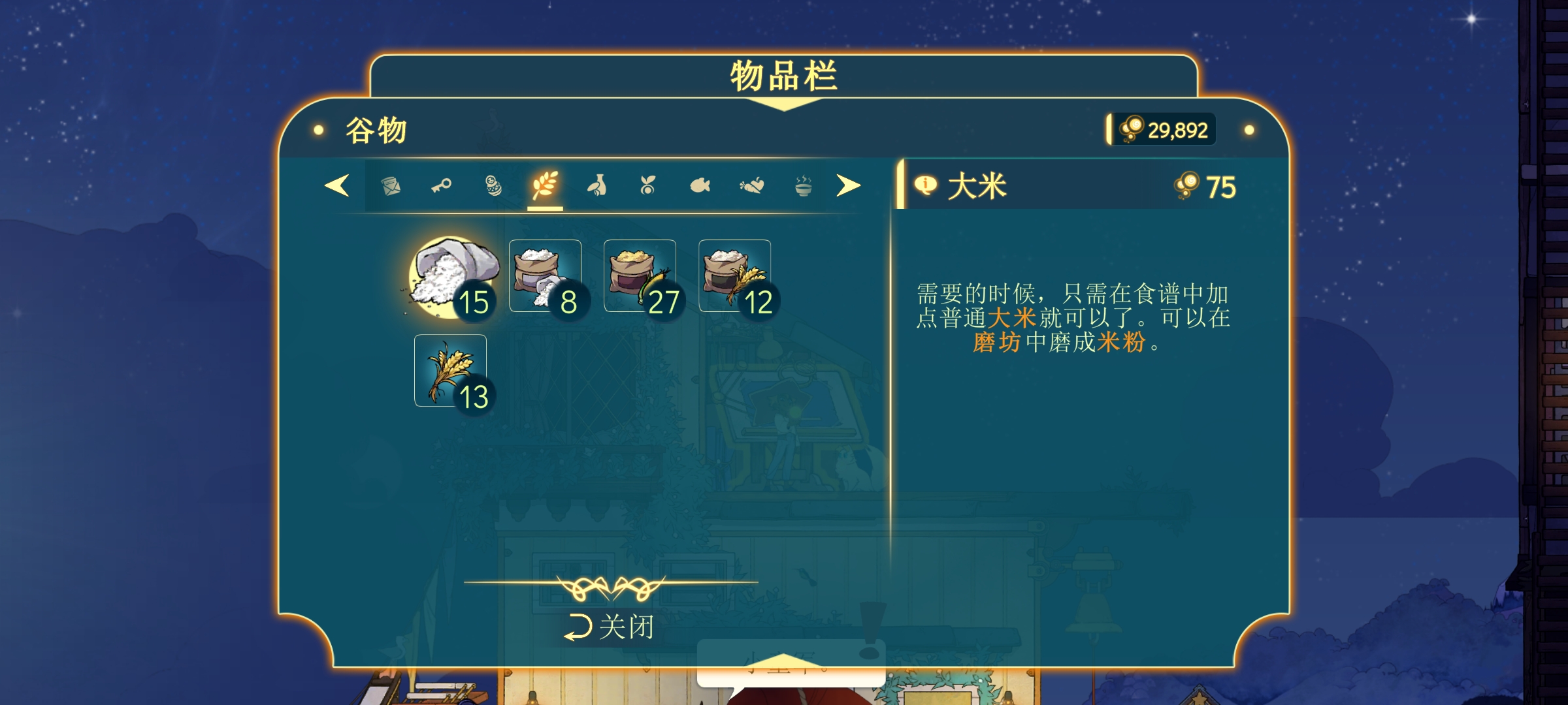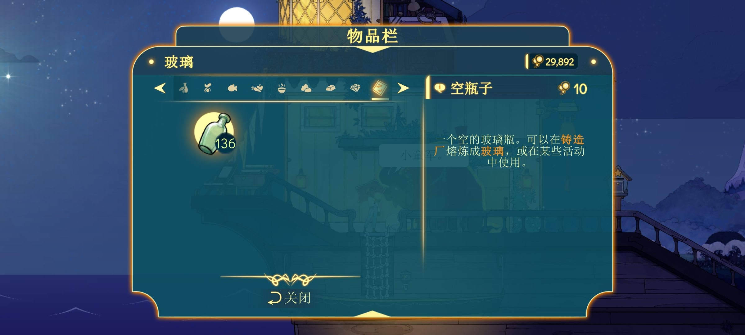 游戏中的资源有很多,根据物品栏顺序,分为文件、特殊、饰物、谷物、配料、种子、钓鱼、蔬果、菜肴、岩石、金属、宝石、玻璃、布料和木材